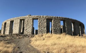 A Stonehenge replica, built as a World War I memorial, is one of the scenic stops along Highway 14.