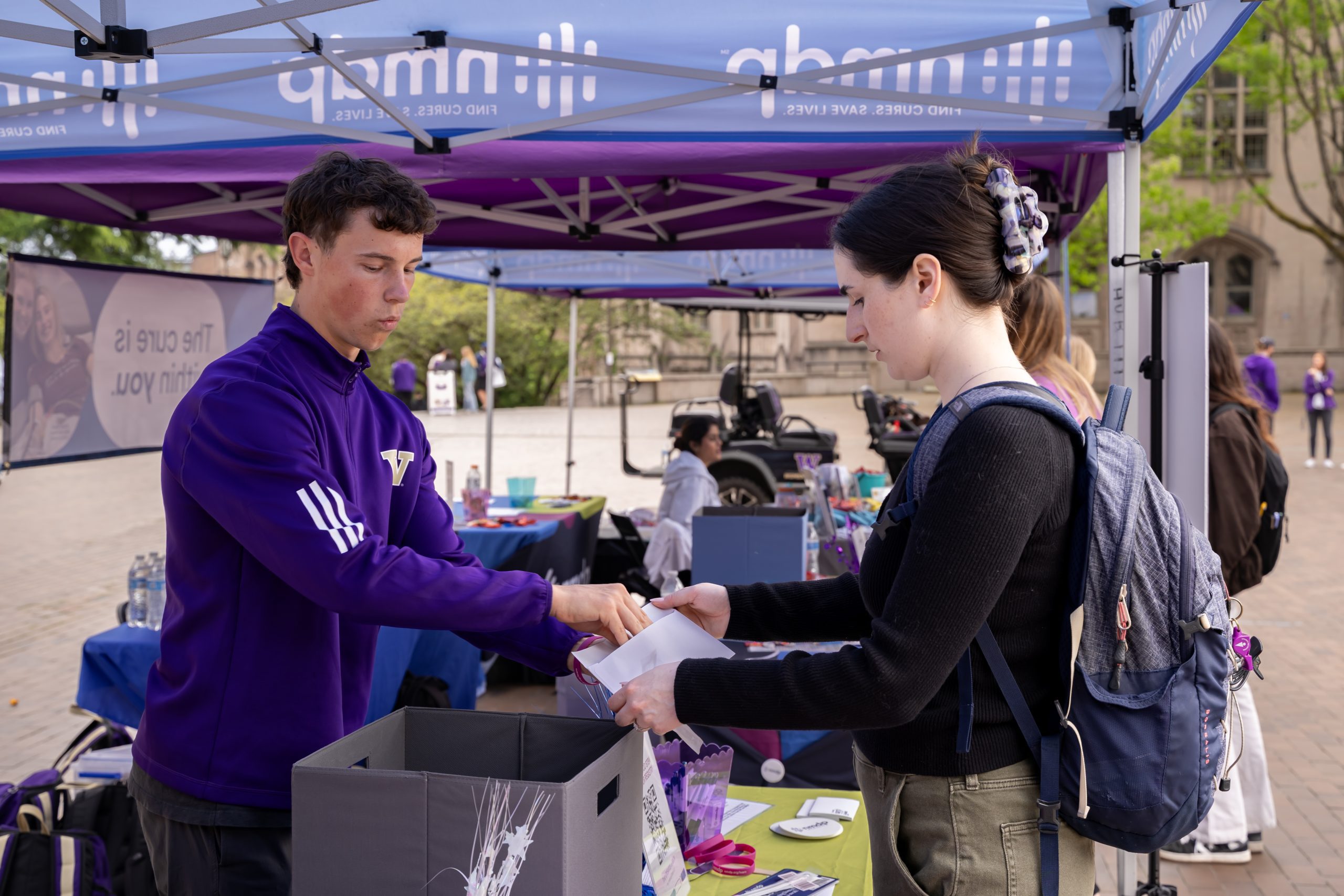 For the past six years, The Whole U has partnered with NMDP (formerly Be The Match) and UW Athletics to host Get in the Game, an annual event encouraging Huskies to join the registry of potential bone marrow and blood stem cell donors. More than 2,000 UW students, staff and faculty have stepped forward over the years, swabbing their cheeks in Red Square and signing up with the hope of one day being called to save a life.